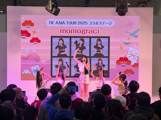 「TIF ASIA TOUR」今日帶來四組偶像:三組日本偶像「LAVILITH」、「藤咲彩音」、「momograci」,以及一組日本偶像「Jewel☆Garden」的台灣成員「初季」。堅強陣容讓近百名粉絲提早現場等候,更是有許多民眾停留欣賞,被偶像們熱力演出的氣氛感染,跟著一起舞動。電波組.inc成員「藤咲彩音」與「LAVILITH」特別演唱初音未來名曲《羅密歐與仙度瑞拉》、隨後由藤咲彩音個人演唱初音未來的《Ghost Rule》。momograci 更帶來去年世界棒球12強的經典應援曲《台灣尚勇》,迅速炒熱現場氣氛。 明天「TIF ASIA TOUR」也將以相同陣容的四組偶像進行演出,讓粉絲們連看兩天超過癮!