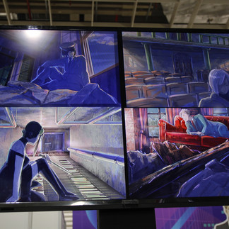 Q:OP和ED的過程是先有音樂在作畫的,在整個製作過程之中是否有遇到困難如何突破的呢? A:這方面都是交給演出去執行,聽完歌曲後會發揮他的想像力去做動畫分鏡,動態的部分則是照分鏡去執行畫面,也是非常的不簡單。演出要由歌曲構思想像的畫面再作畫是件很不容易的事情。
